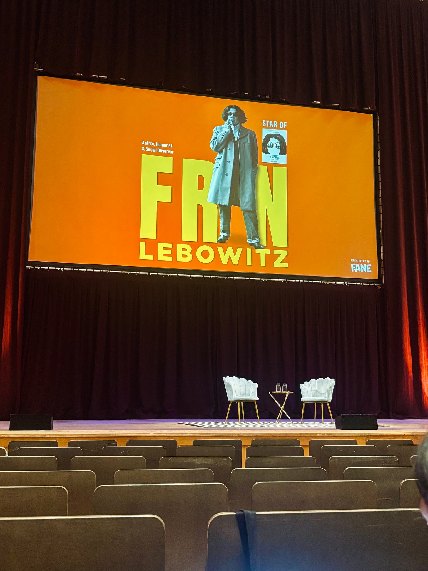 I went a couple of nights ago to see Fran Lebowitz on tour, which coincided with the paperback release of her book The Fran Lebowitz Reader — a collection of her essays and writings from over the years.